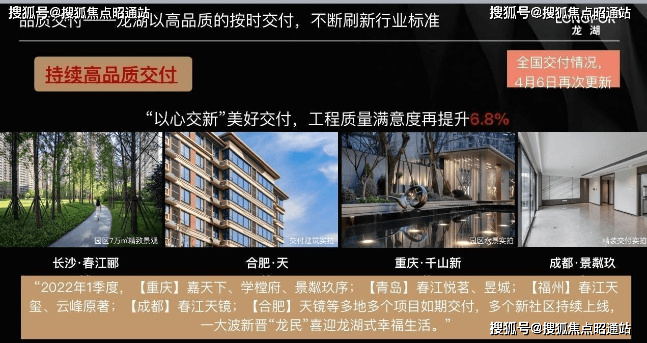 “一湖四环”和“一湖四片”政策下,龙湖不竭创制区域标杆项目;打制一门、两庭、三园六境从题空间。持续创制更好的糊口。